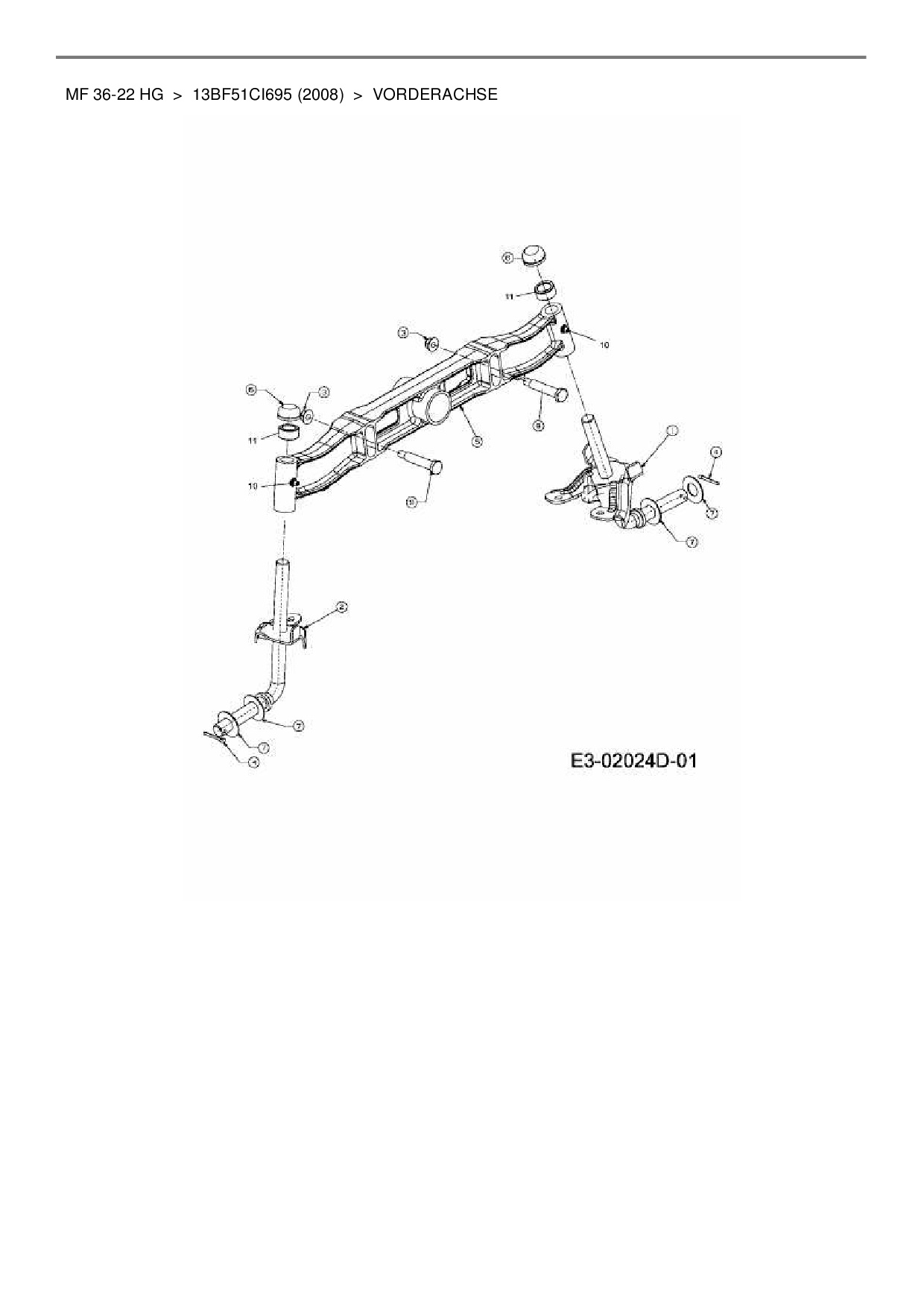 Ersatzteile für Rasentraktor Massey Ferguson MF 36-22 HG aus der Zeichnung Vorderachse: