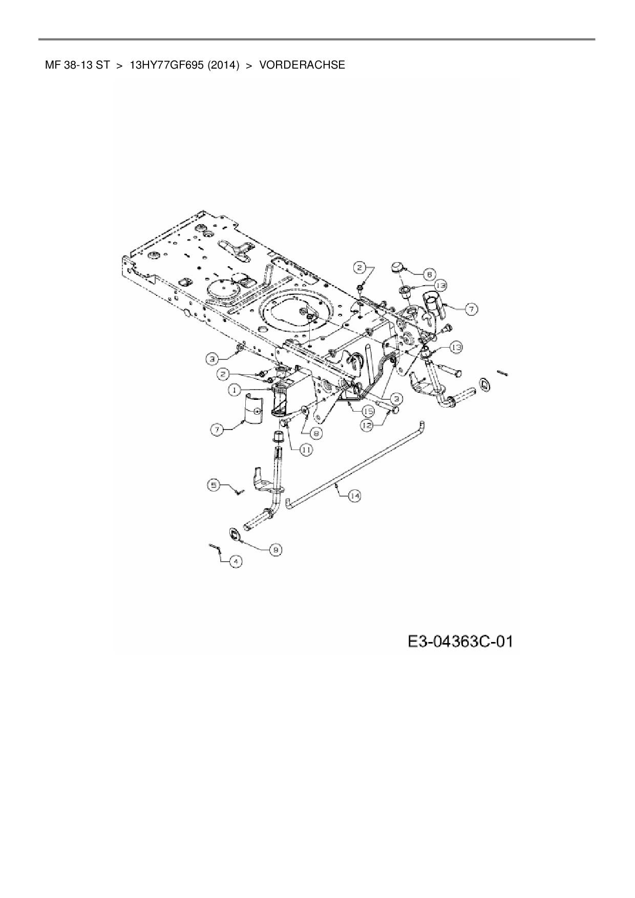Zeichnung für Massey Ferguson Rasentraktor MF 38-13 ST mit der Geräte-Artikelnr. 13HY77GF695 ab Baujahr 2014: