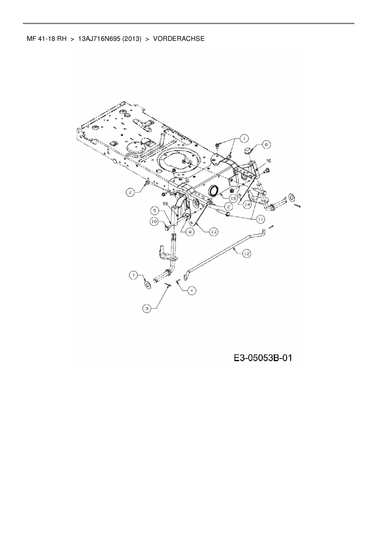 Zeichnung für Massey Ferguson Rasentraktor MF 41-18 RH mit der Geräte-Artikelnr. 13AJ716N695 ab Baujahr 2013: