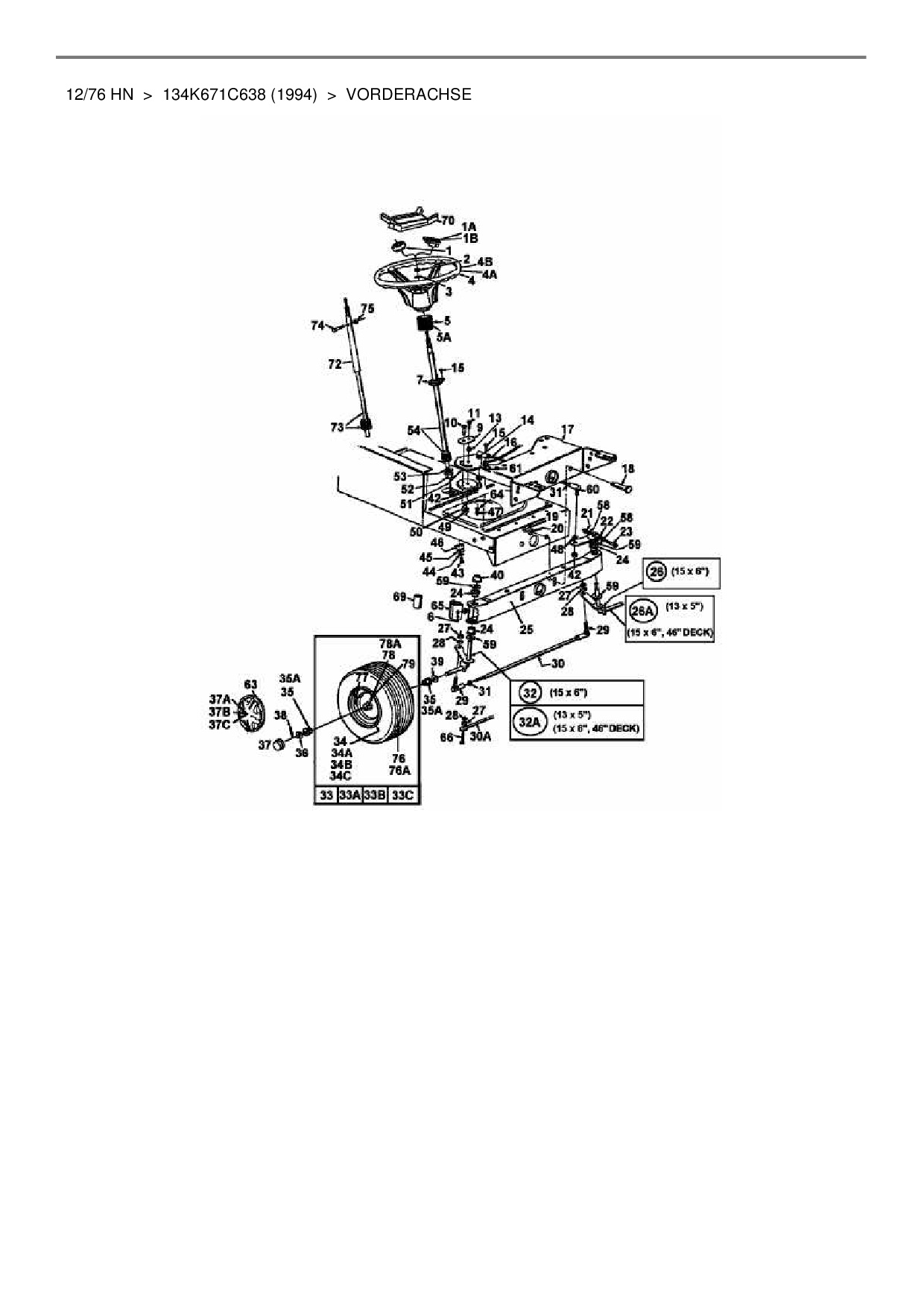 Zeichnung für MTD Rasentraktor 12/76 HN mit der Geräte-Artikelnr. 134K671C638 ab Baujahr 1994:
