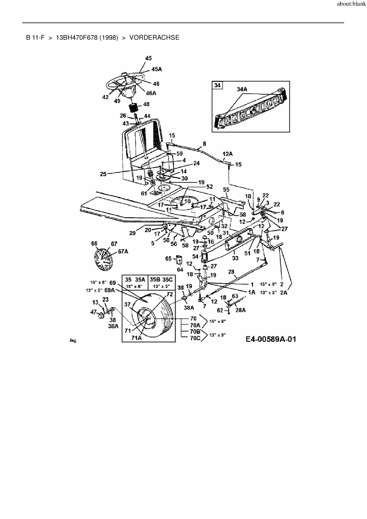 Ersatzteile für Rasentraktor MTD B 11-F aus der Zeichnung Vorderachse: