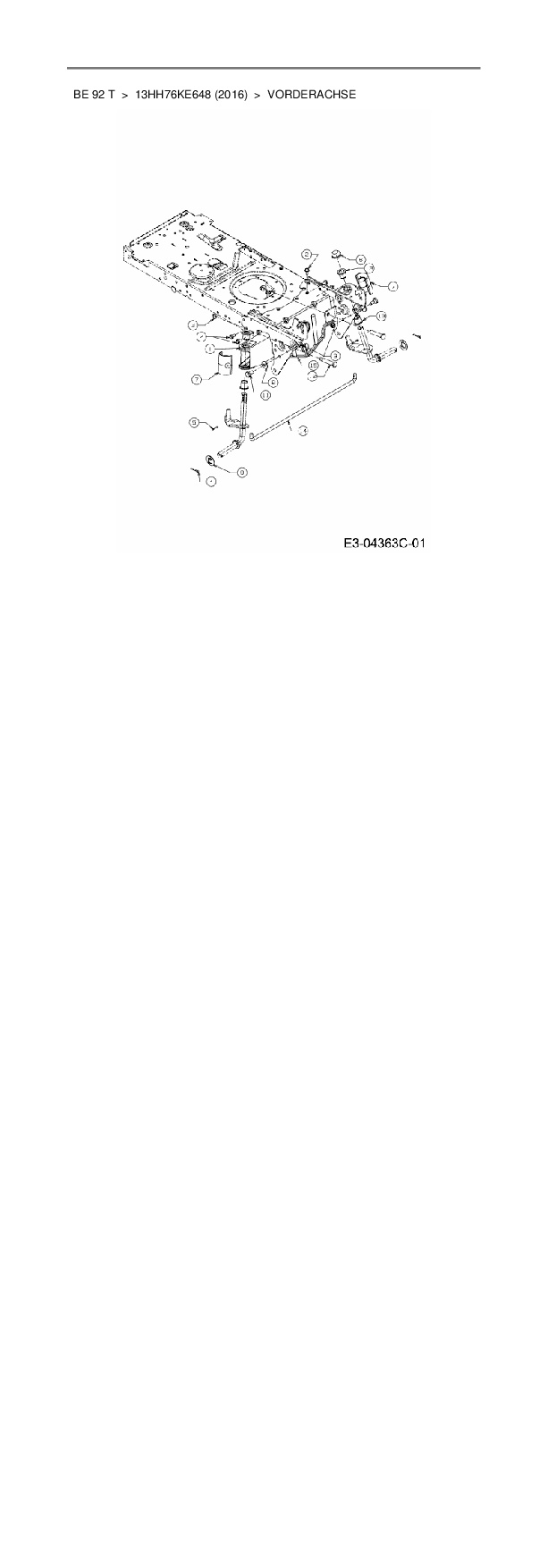 Download Ersatzteil-Zeichnung MTD BE 92 T Zeichnung Vorderachse (PDF-Format)