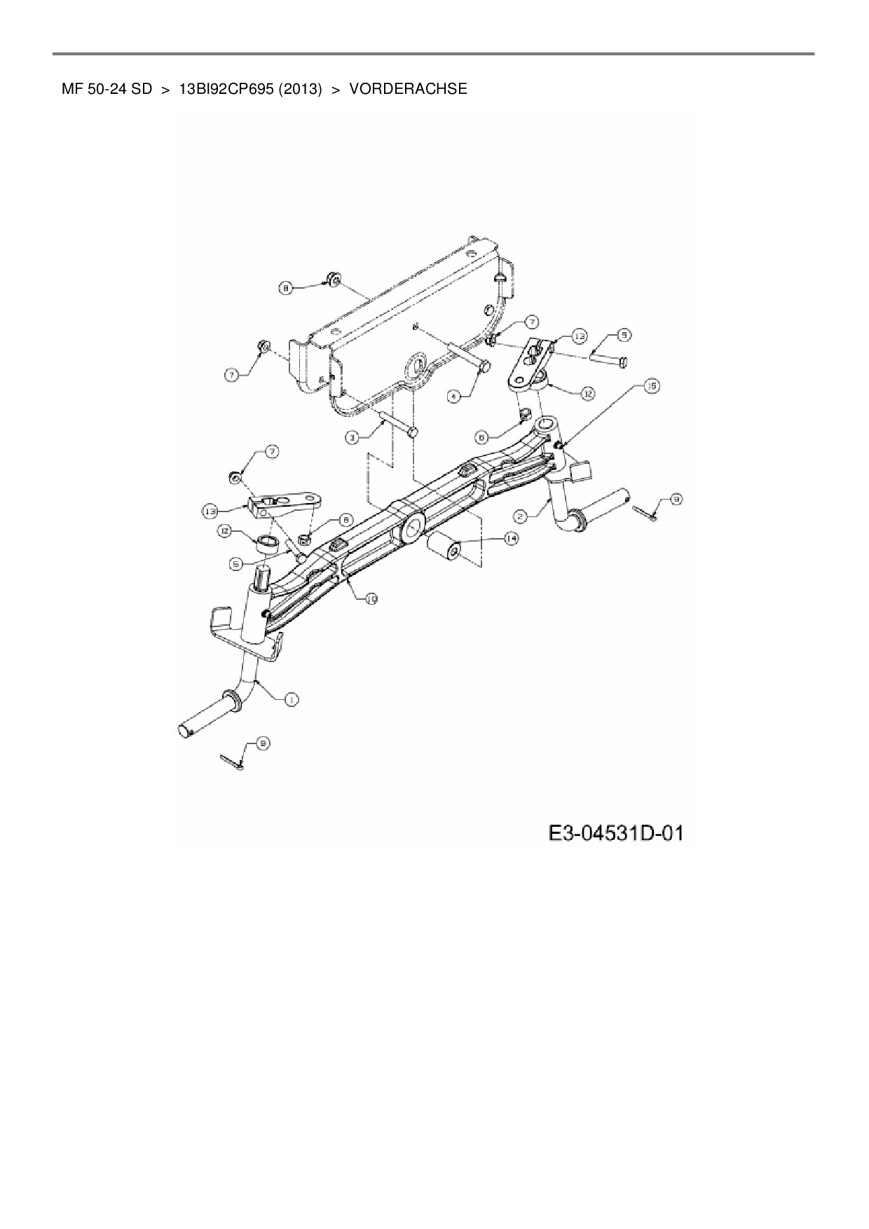 Ersatzteile für Rasentraktor Massey Ferguson MF 50-24 SD aus der Zeichnung Vorderachse: