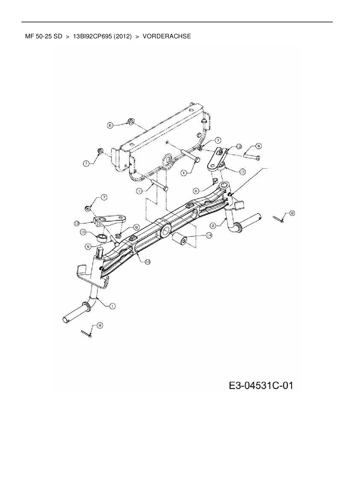 Ersatzteile für Rasentraktor Massey Ferguson MF 50-25 SD aus der Zeichnung Vorderachse: