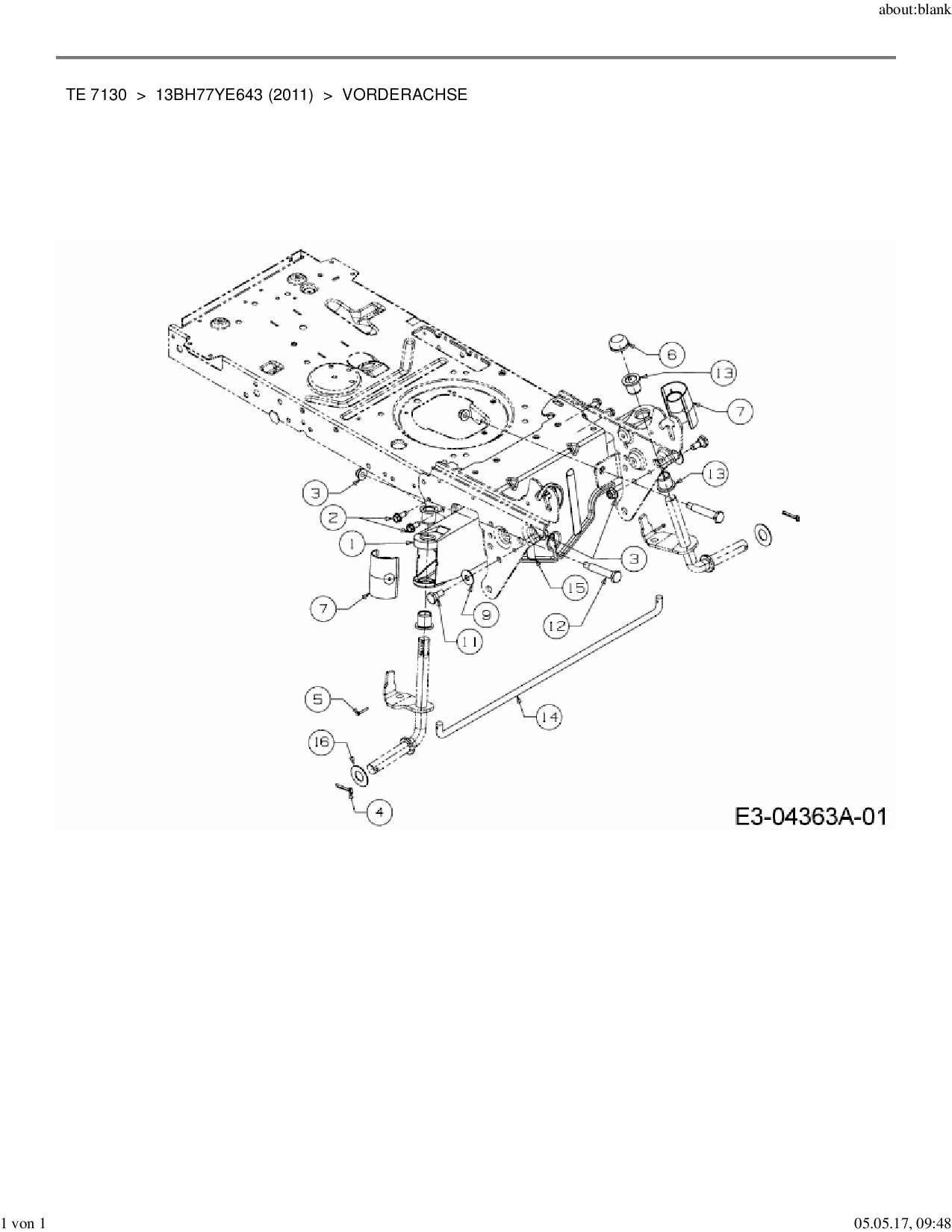 Ersatzteile für Rasentraktor Yard-Man TE 7130 aus der Zeichnung Vorderachse: