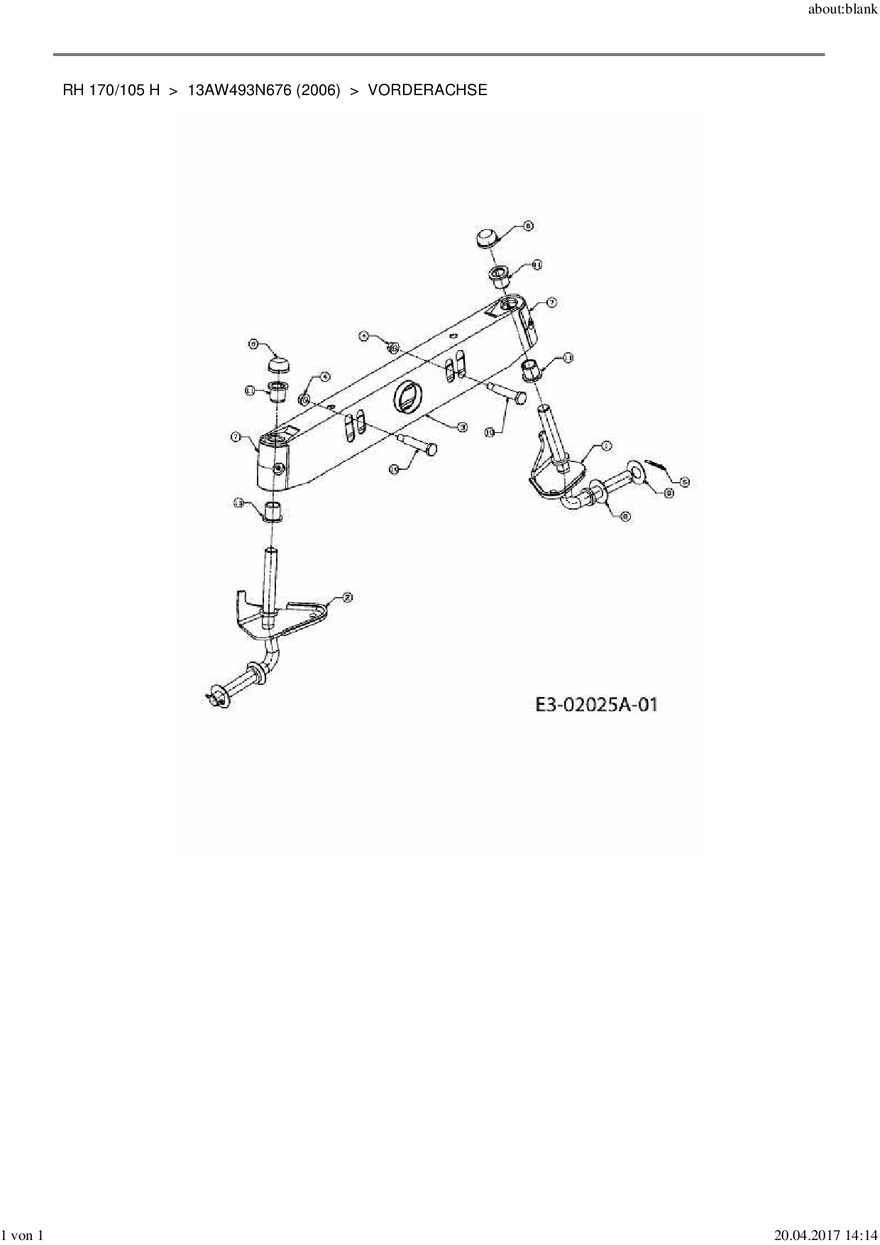 Ersatzteile für Rasentraktor MTD RH 170/105 H aus der Zeichnung Vorderachse: