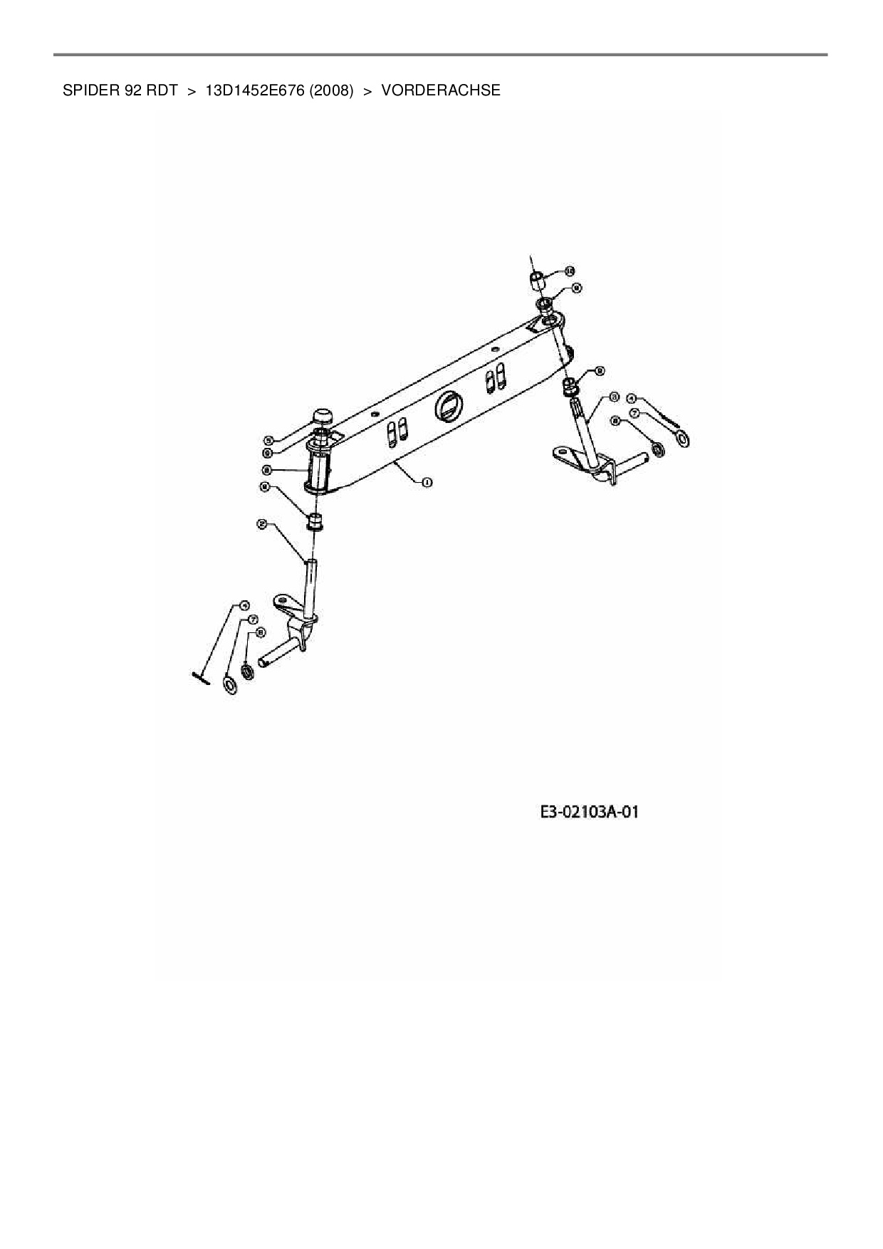 Ersatzteile für Rasentraktor MTD Spider 92 RDT aus der Zeichnung Vorderachse: