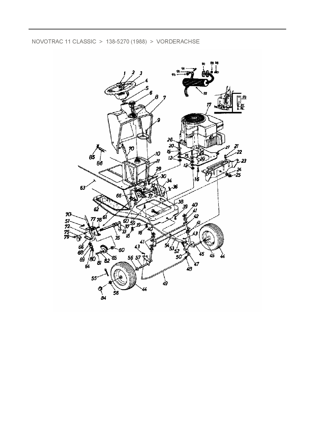 Zeichnung für Novotrac Rasentraktor NOVOTRAC 11 Classic mit der Geräte-Artikelnr. 138-5270 ab Baujahr 1988: