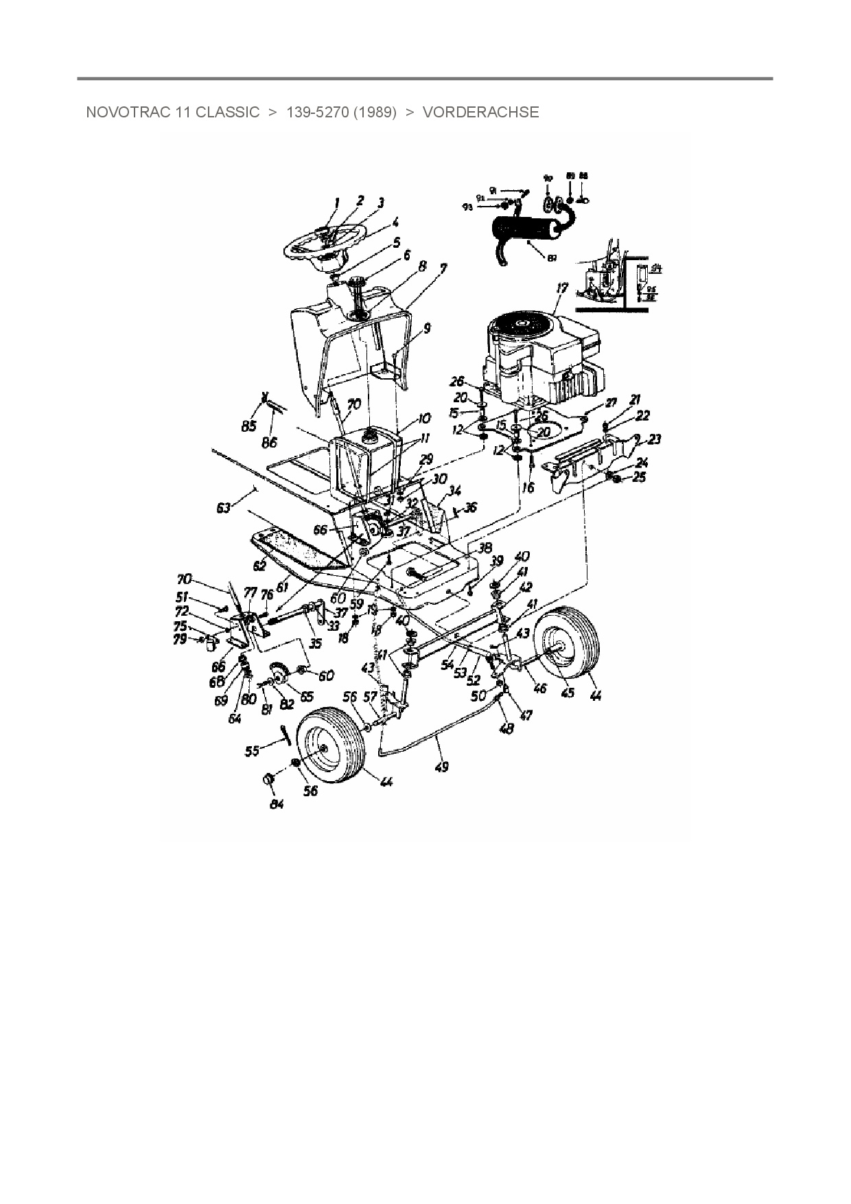 Zeichnung für Novotrac Rasentraktor NOVOTRAC 11 Classic mit der Geräte-Artikelnr. 139-5270 ab Baujahr 1989: