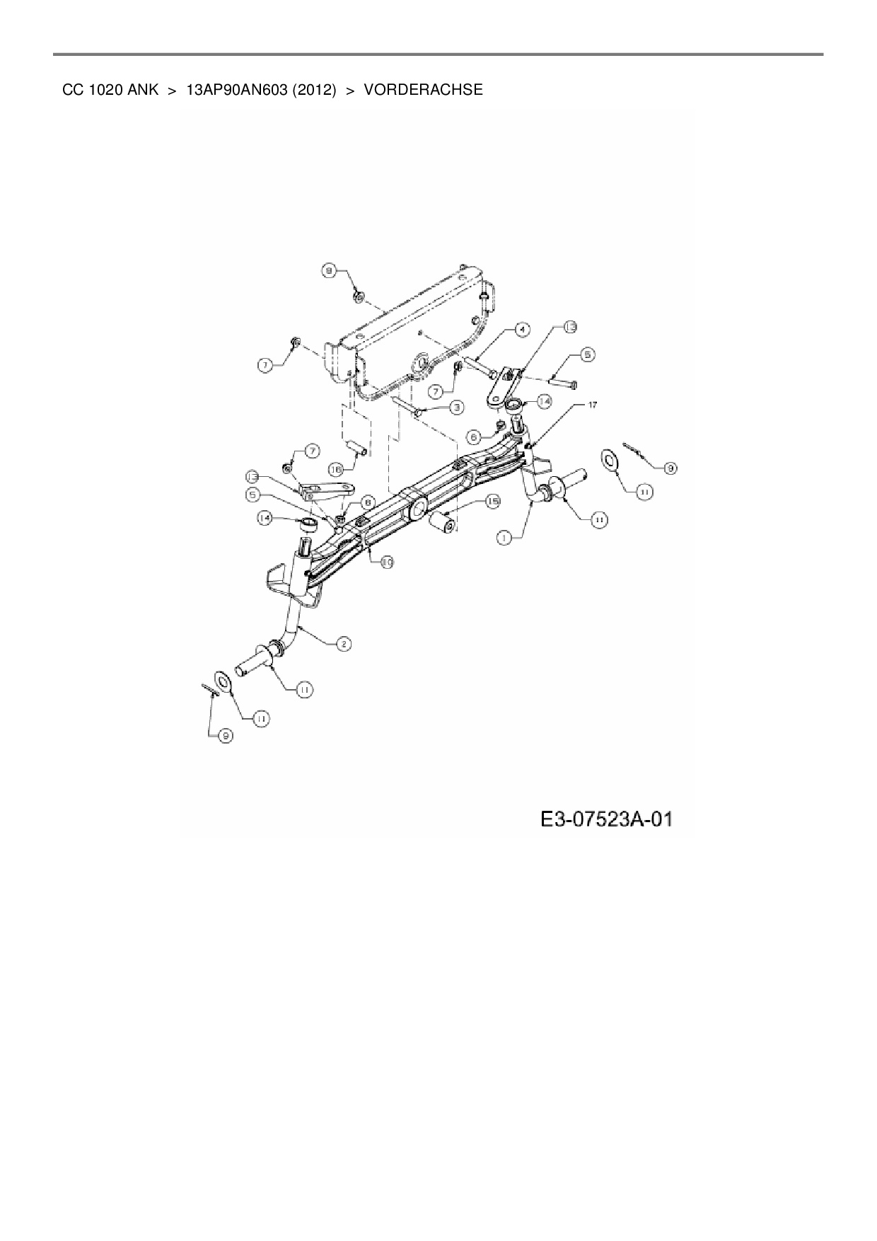 Ersatzteile für Rasentraktor Cub Cadet CC 1020 ANK aus der Zeichnung Vorderachse: