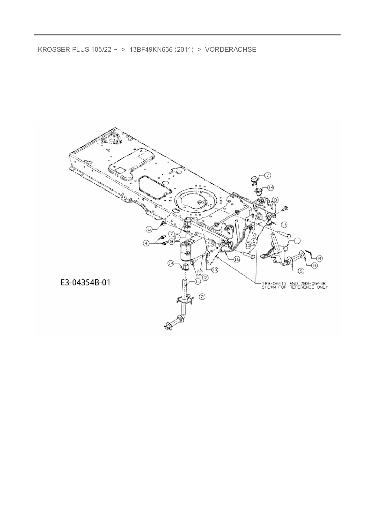Zeichnung für Oleo-Mac Rasentraktor Krosser Plus 105/22 H mit der Geräte-Artikelnr. 13BF49KN636 ab Baujahr 2011: