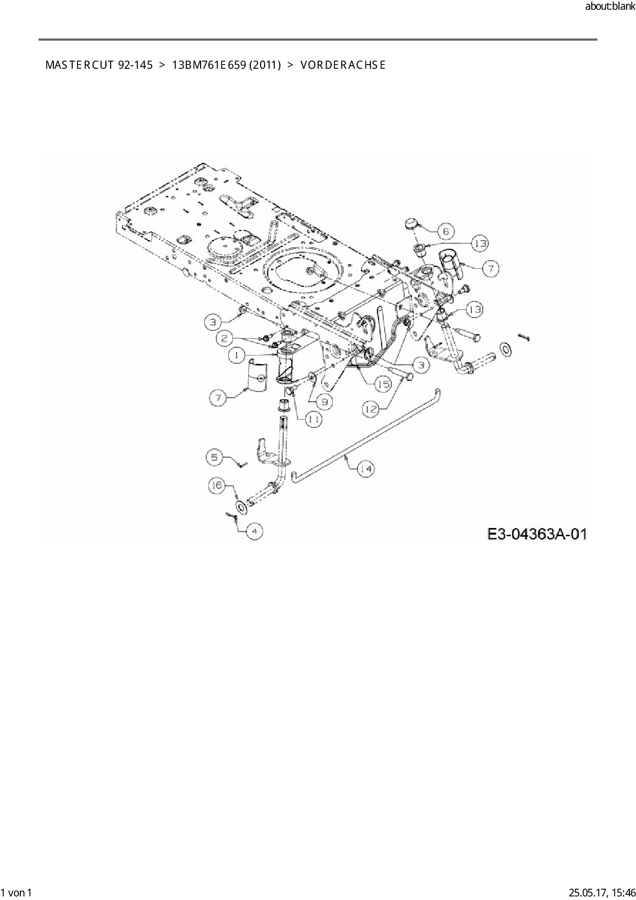 Ersatzteile für Rasentraktor Mastercut Mastercut 92-145 aus der Zeichnung Vorderachse: