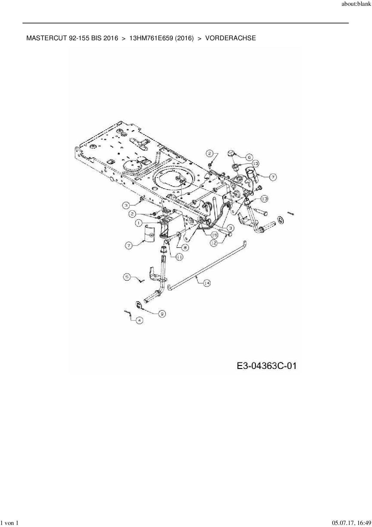 Download Ersatzteil-Zeichnung Mastercut Mastercut 92-155 bis 2016 Zeichnung Vorderachse (PDF-Format)