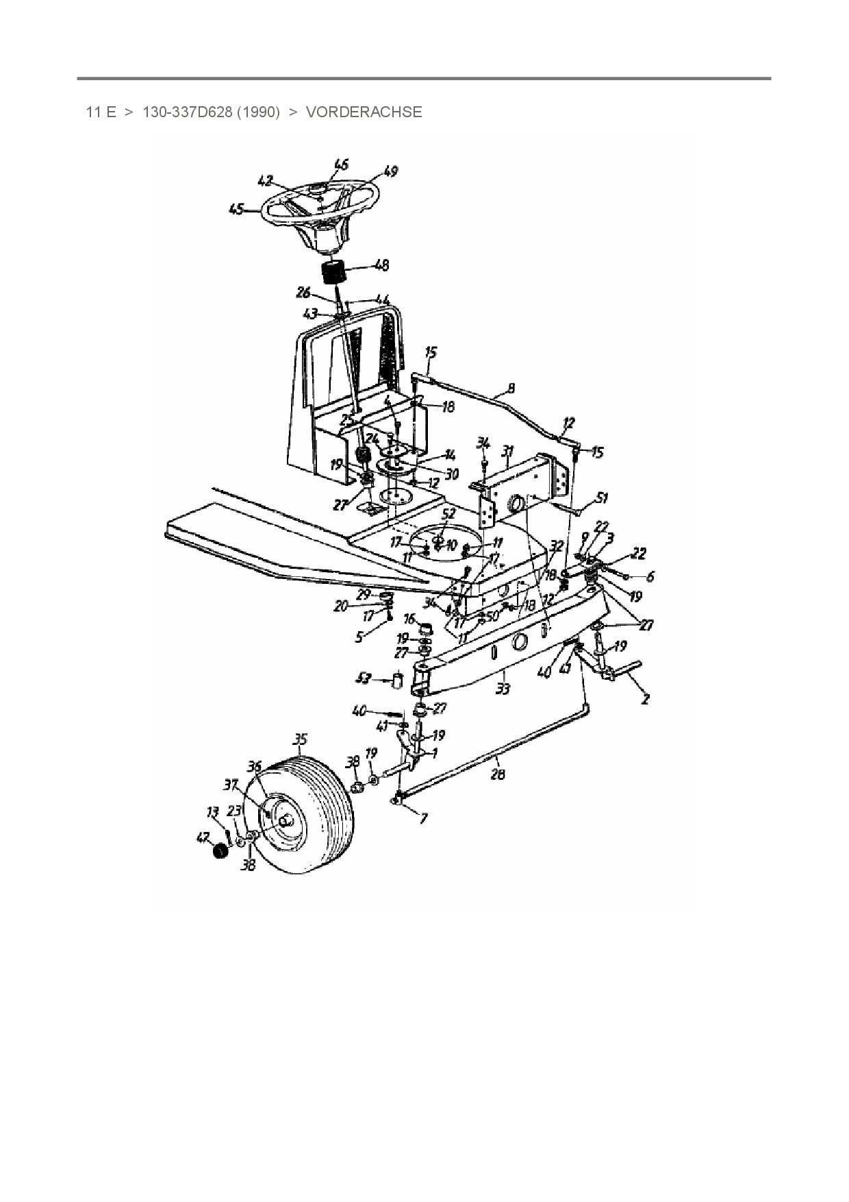 Zeichnung für Raiffeisen Rasentraktor 11 E mit der Geräte-Artikelnr. 130-337D628 ab Baujahr 1990: