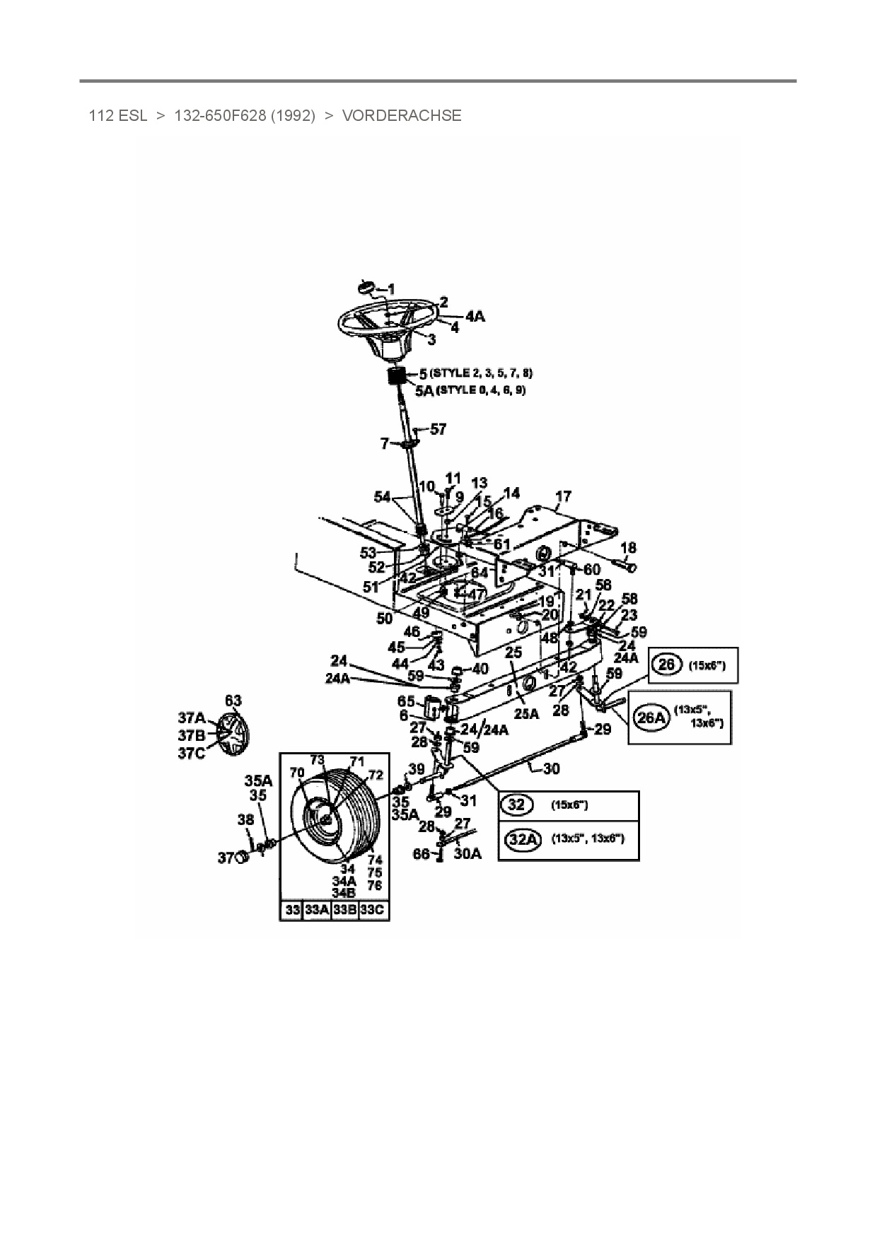 Zeichnung für Raiffeisen Rasentraktor 112 ESL mit der Geräte-Artikelnr. 132-650F628 ab Baujahr 1992: