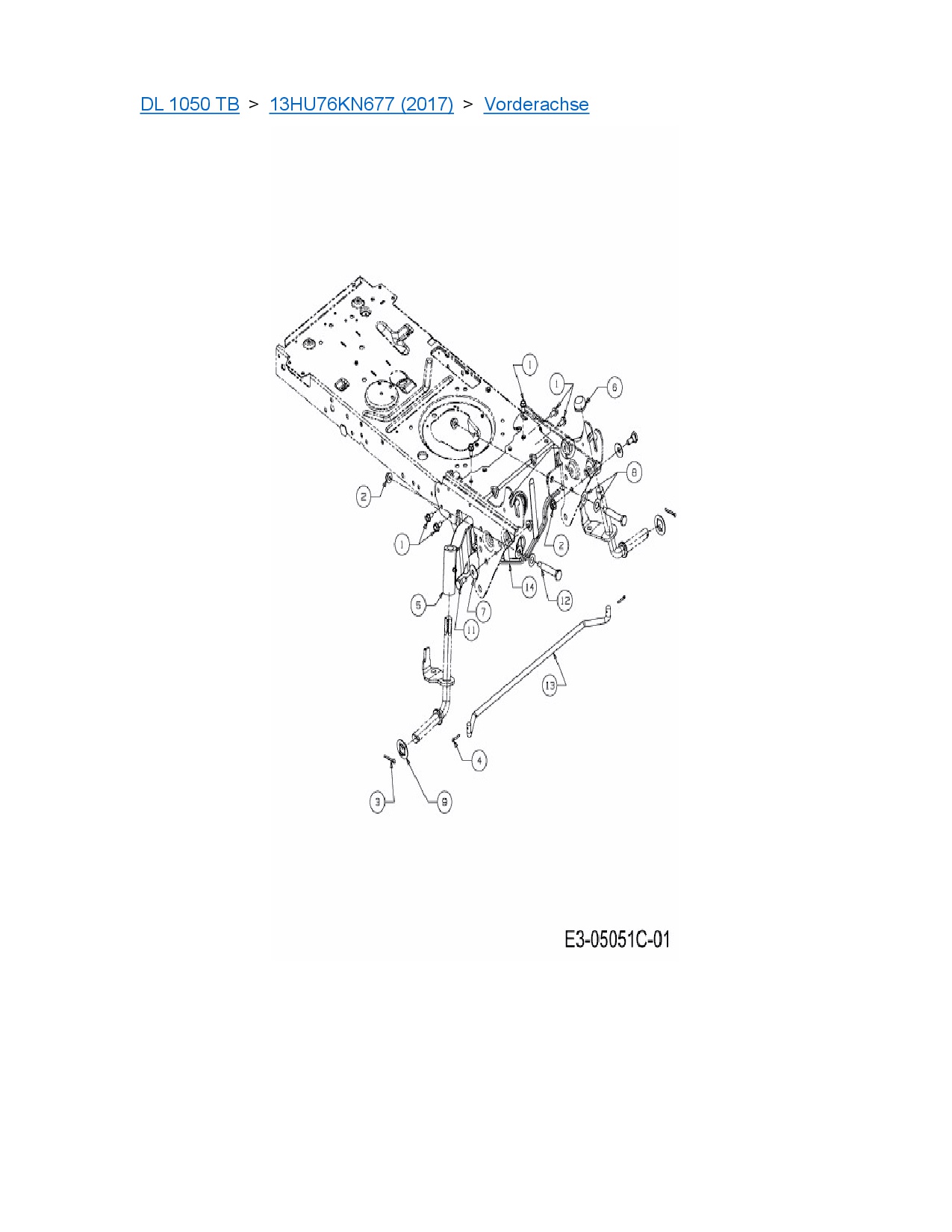Ersatzteile für Rasentraktor MTD DL 1050 TB aus der Zeichnung Vorderachse: