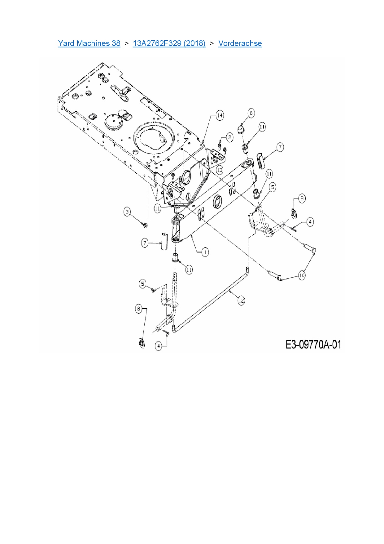 Ersatzteile für Rasentraktor MTD Yard Machines 38 aus der Zeichnung Vorderachse: