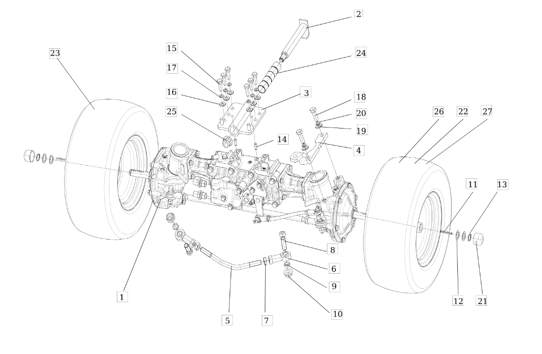 Hier finden Sie alle Ersatzteile für Oleo-Mac Rasentraktor CHEYENNE (B&S) 110 4x4 Cat. 2014 aus der Zeichnung für Vorderachse: