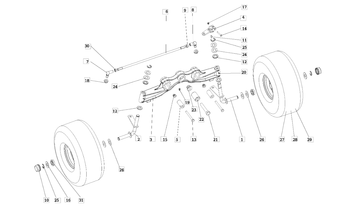 Hier finden Sie alle Ersatzteile für Oleo-Mac Rasentraktor OM 106/17,5 H Cat. 2015 aus der Zeichnung für Vorderachse: