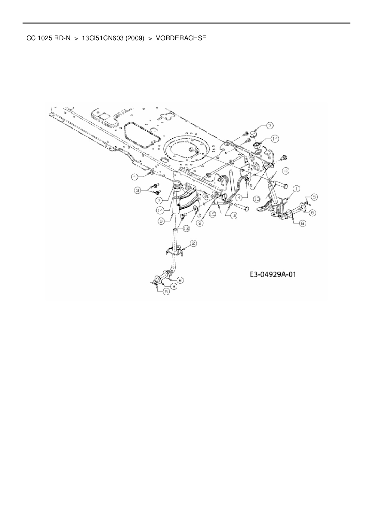 Ersatzteile für Rasentraktor Cub Cadet CC 1025 RD-N aus der Zeichnung Vorderachse: