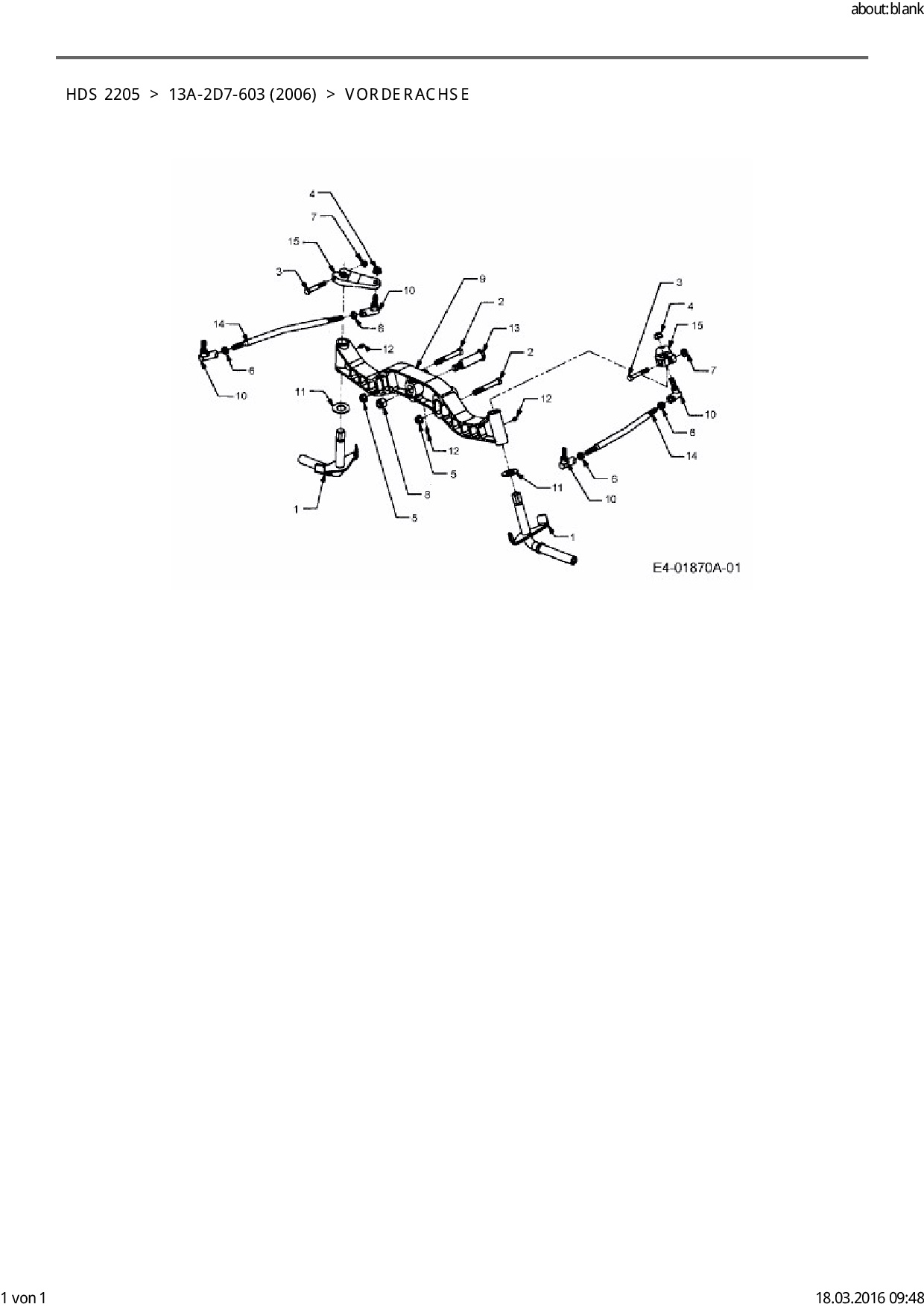 Ersatzteile für Rasentraktor Cub Cadet HDS 2205 aus der Zeichnung Vorderachse: