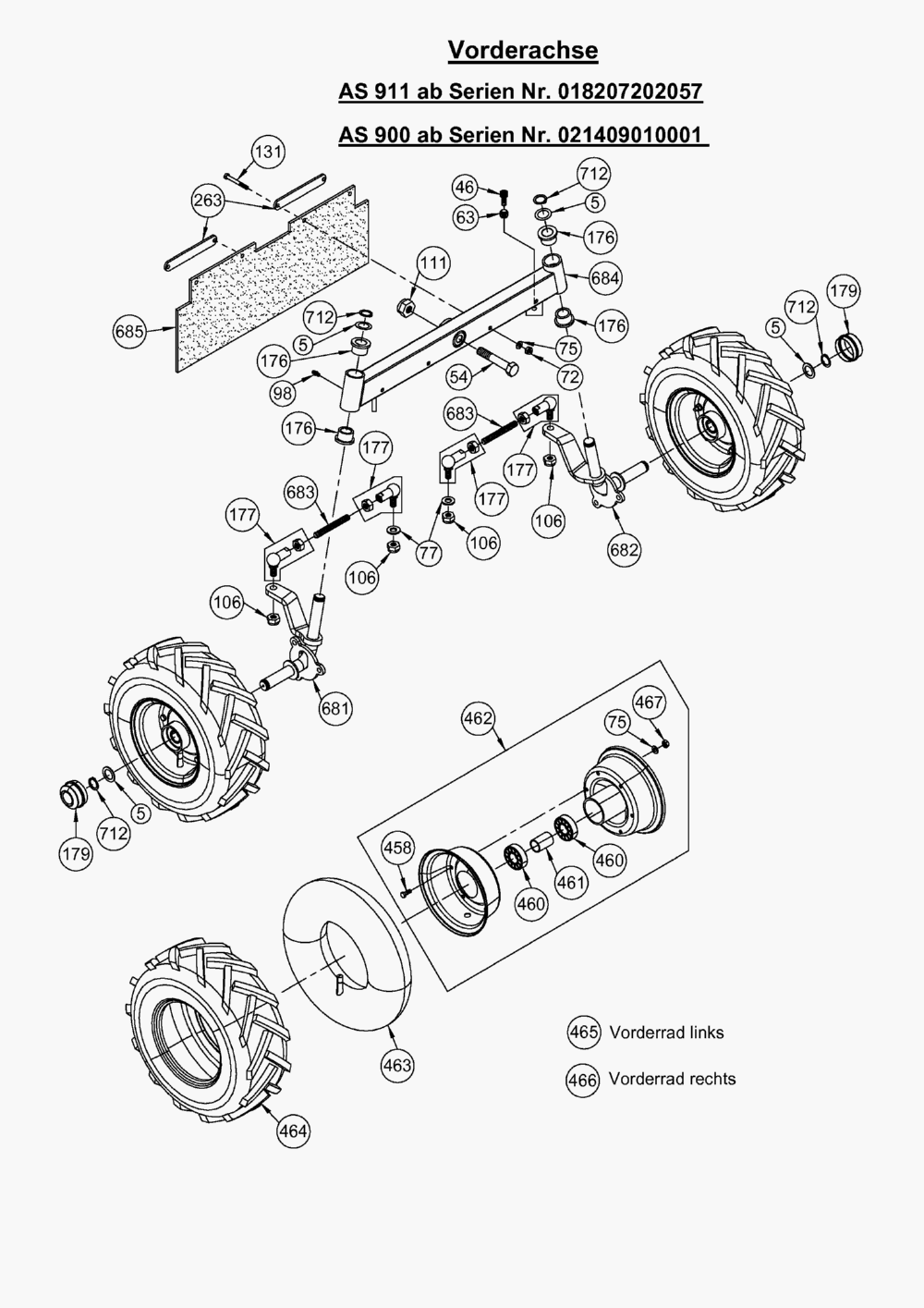Hier finden Sie alle Ersatzteile von AS-Motor Aufsitzmäher AS 911, AS 915 Enduro ab FNr. 018208020001 aus dem Zeichnungsblatt Vorderachse: