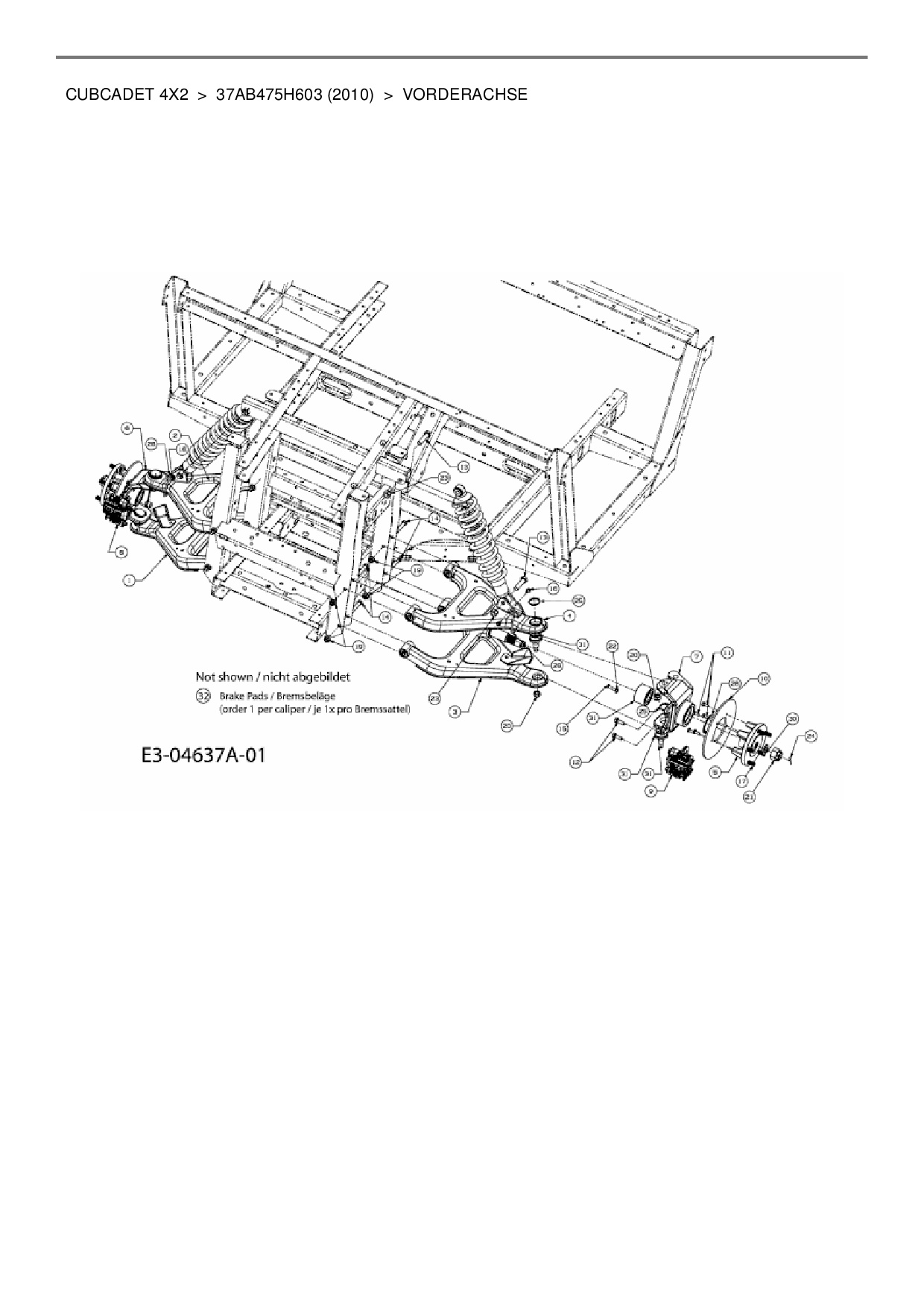 Download Ersatzteil-Zeichnung Cub Cadet CubCadet 4X2 Zeichnung Vorderachse (PDF-Format)