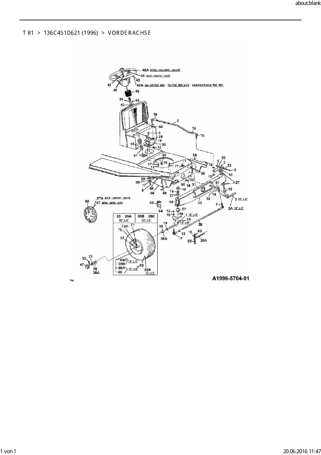 Zeichnung für Diana Rasentraktor T 81 mit der Geräte-Artikelnr. 136C451D621 ab Baujahr 1996: