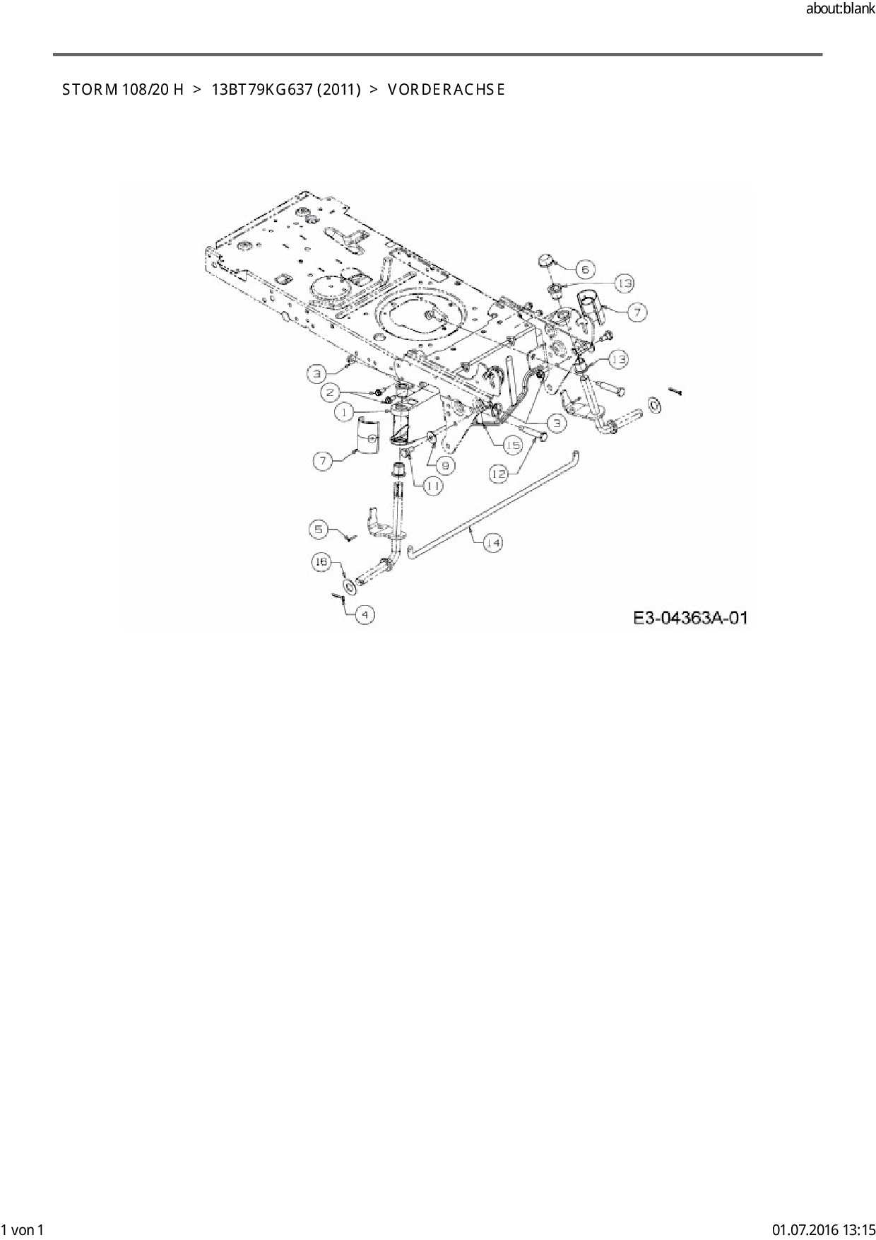 Ersatzteile für Rasentraktor EFCO Storm 108/20 H aus der Zeichnung Vorderachse: