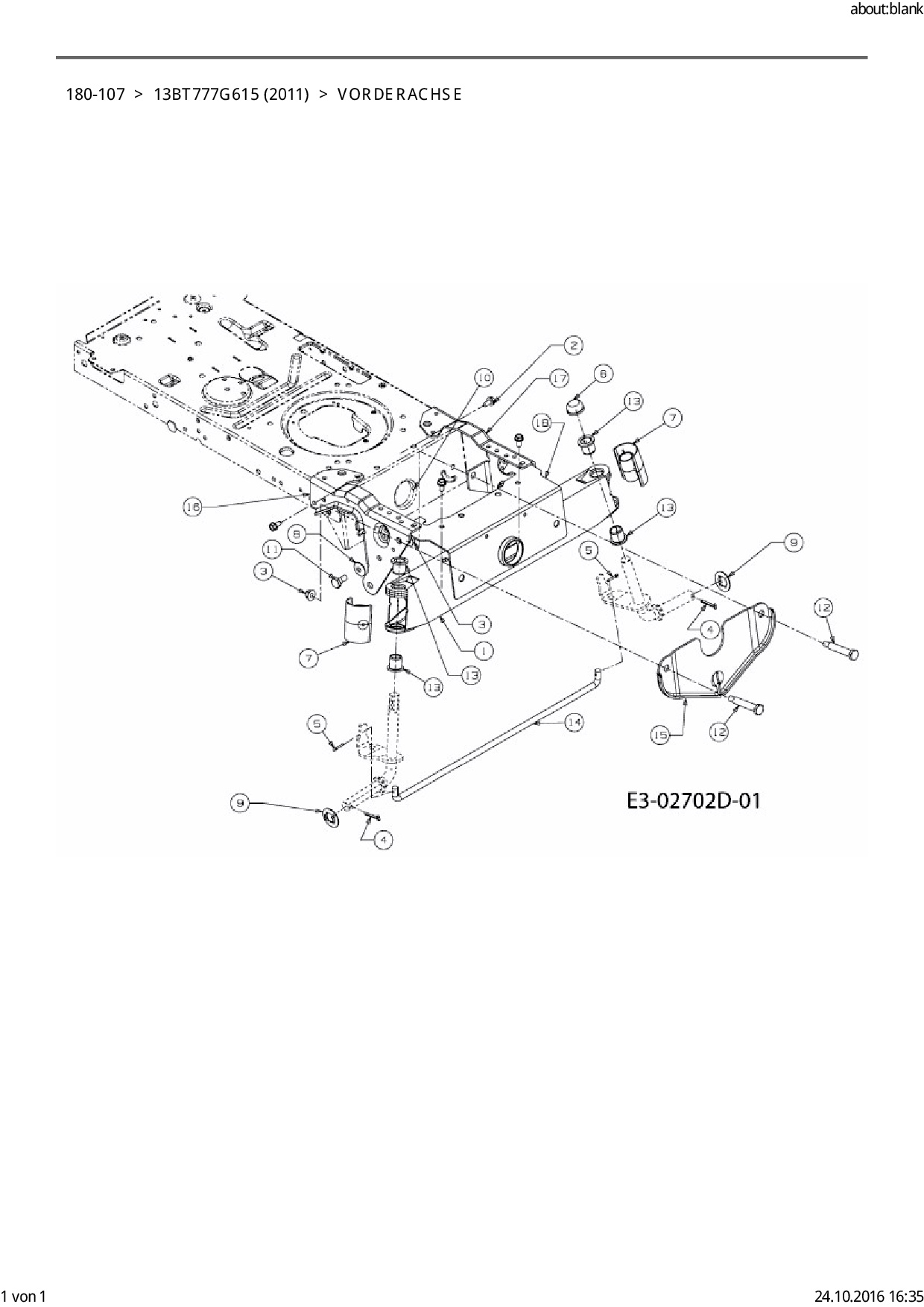 Ersatzteile für Rasentraktor Black Edition 180-107 aus der Zeichnung Vorderachse: