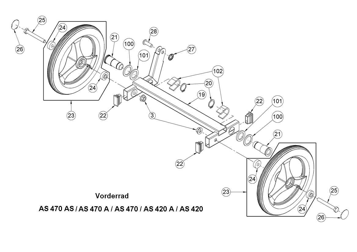 Hier finden Sie alle Ersatzteile von AS-Motor Mulch-Rasenmäher AS 470 4T A und AS 470 A SuperClip ab FNr. 025513030001 aus dem Zeichnungsblatt Vorderrad: