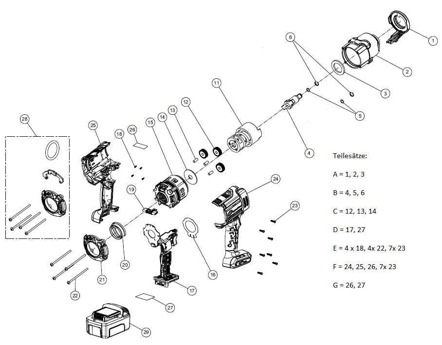 Zeichnung Sollten Sie Fragen zu einem Ersatzteil vom IR (Ingersoll Rand) W7152 - Cordless Impact Wrench haben, können Sie uns gerne eine E-Mail (mit einem Foto vom Typenschild Ihres Gerätes) schreiben oder eine Ersatzteilanfrage stellen.