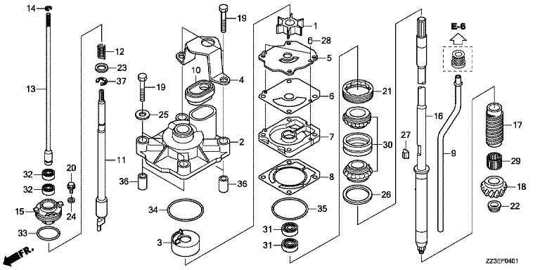 Ersatzteile für Honda Außenbordmotoren BFP60AK1 XRTL (XRTL) Baugruppe WASSERPUMPE (2)