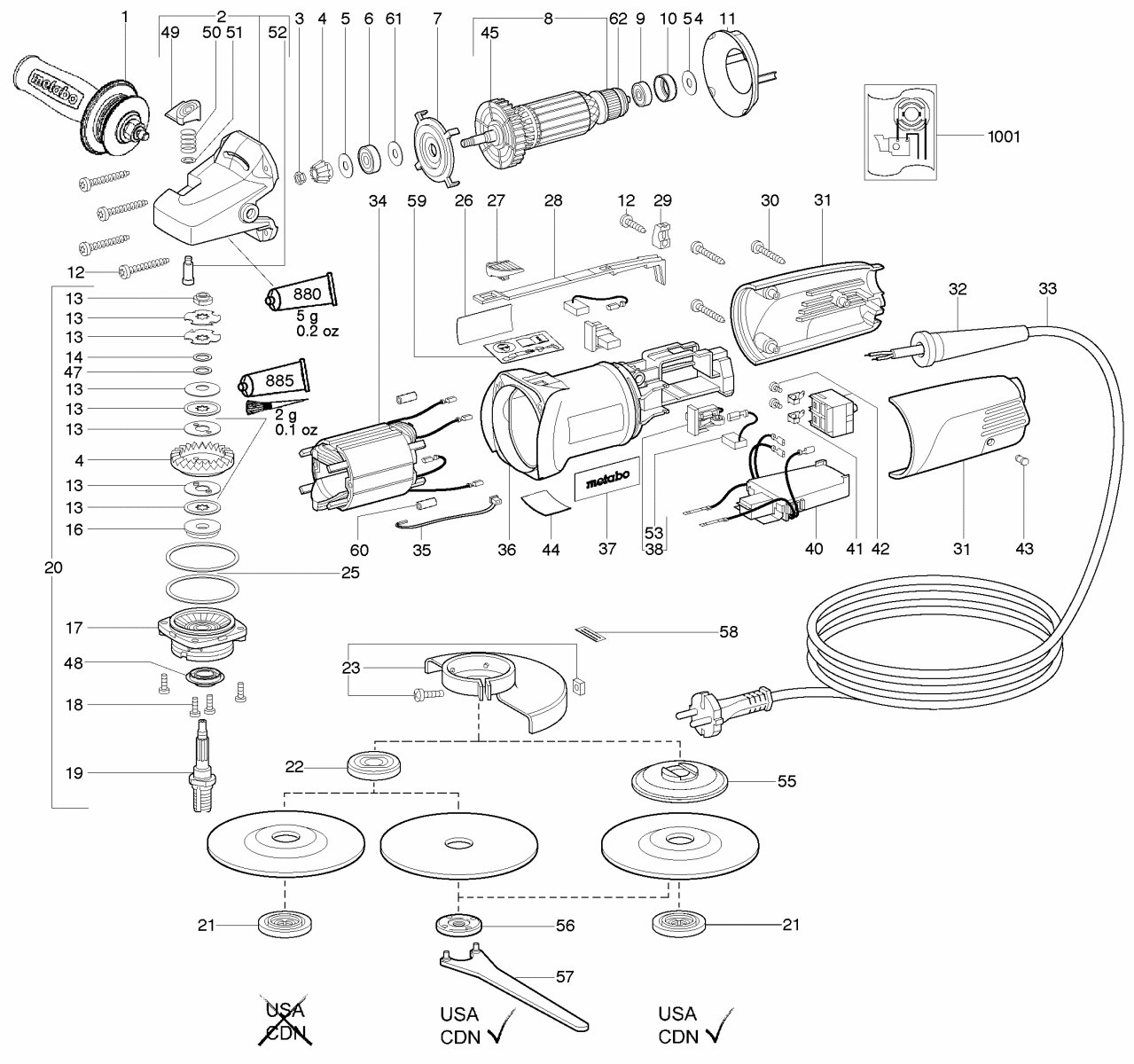 Zeichnung 1 Sollten Sie Fragen zu einem Ersatzteil von Metabo WE 14-150 Plus Winkelschleifer 601451000 haben, können Sie uns gerne eine E-Mail (mit einem Foto vom Typenschild Ihres Gerätes) schreiben oder eine Ersatzteilanfrage stellen.
