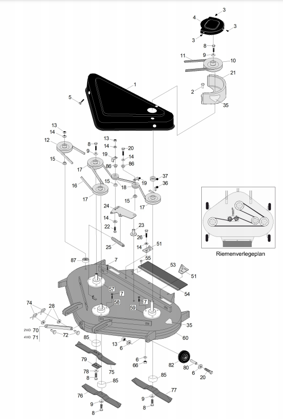 Zeichnung von Westwood S & T-Serie Rasenpflgemaschinen WKM-011 Bj. 2004 bis 2008 WKM-011 Grundkörper: