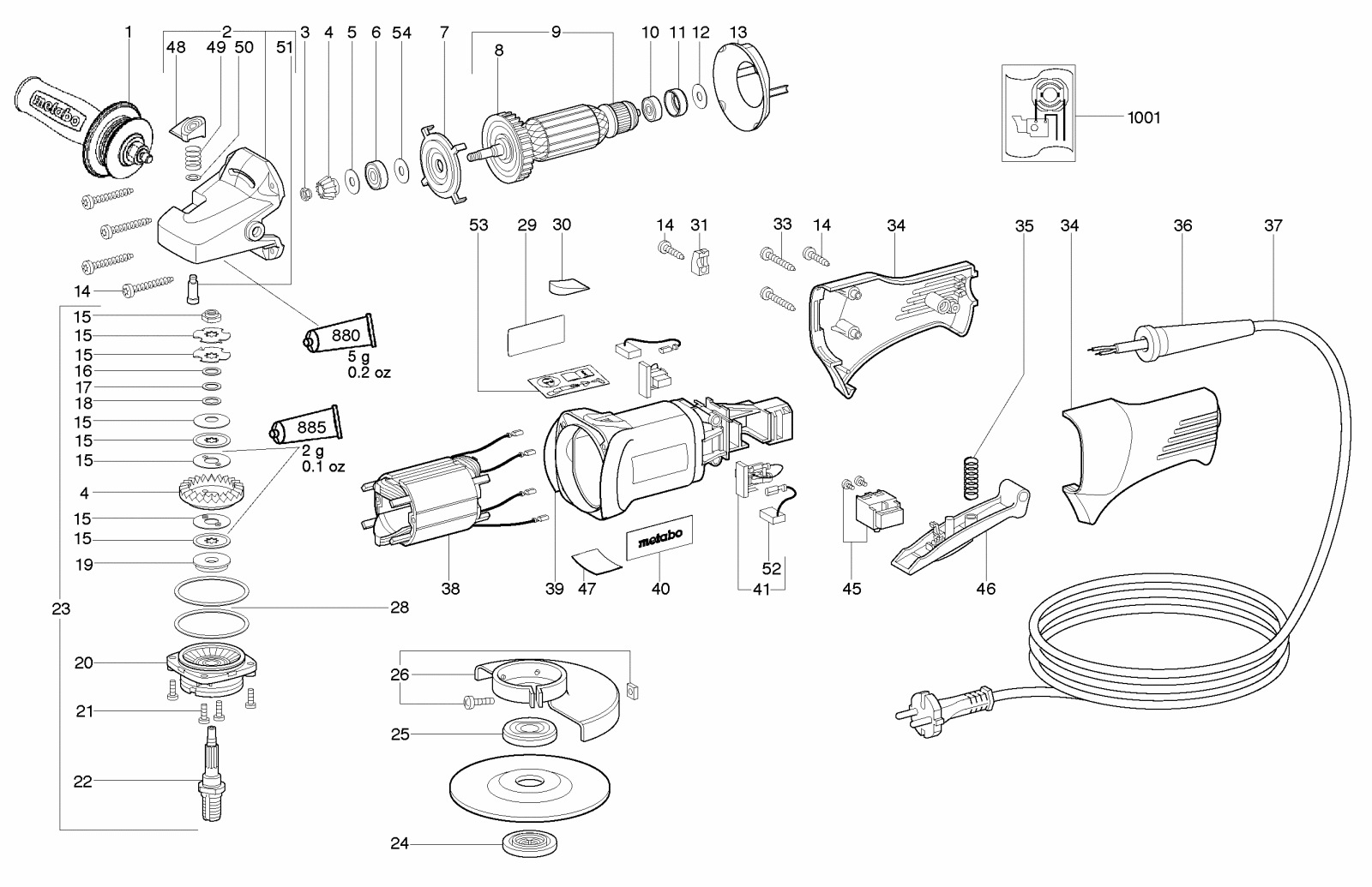 Zeichnung 1 Sollten Sie Fragen zu einem Ersatzteil von Metabo WPS 7-125 Quick Winkelschleifer 606211380 haben, können Sie uns gerne eine E-Mail (mit einem Foto vom Typenschild Ihres Gerätes) schreiben oder eine Ersatzteilanfrage stellen.