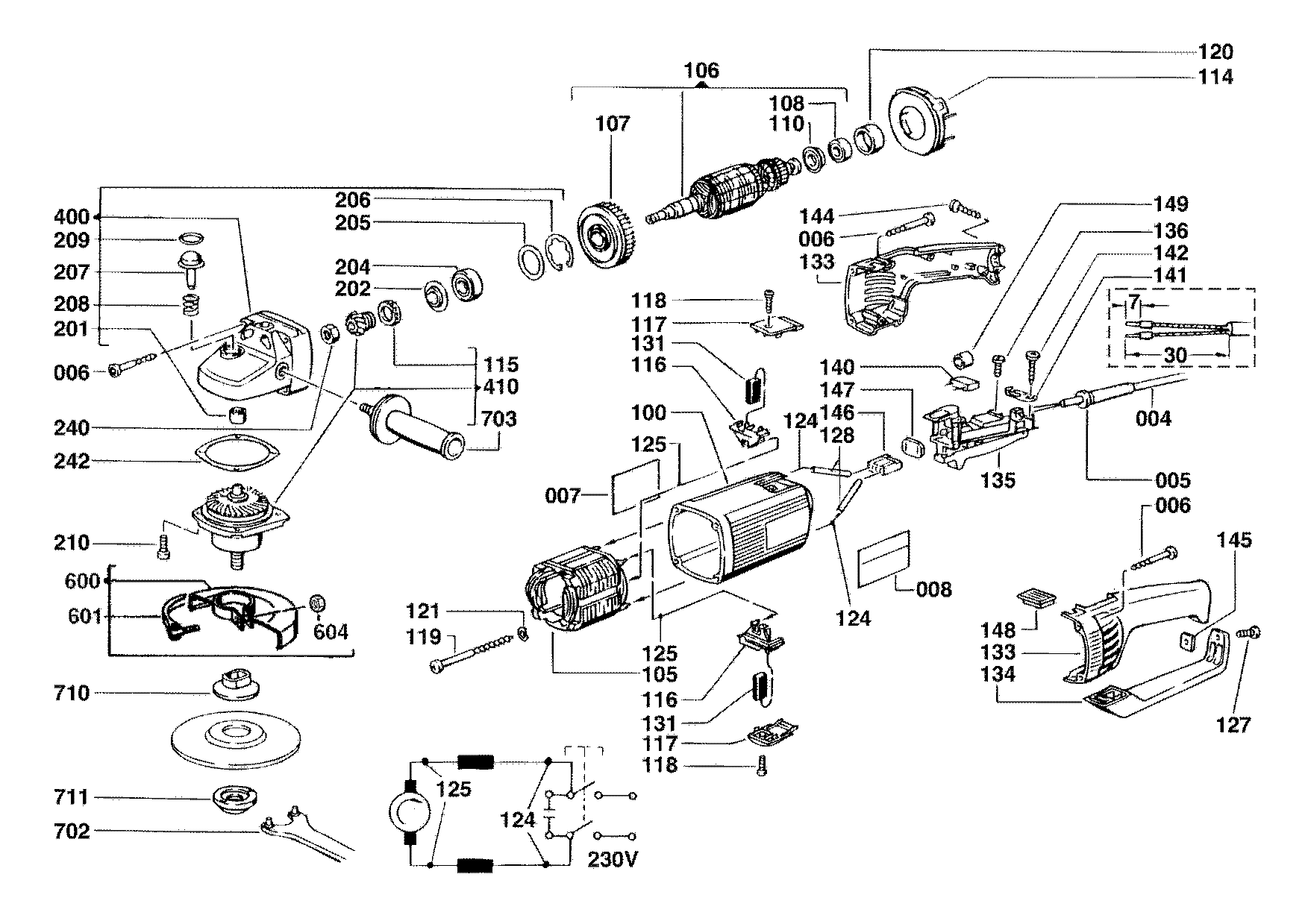 Ersatzteile für Milwaukee WSA1900 Winkelschleifer (4000355601)