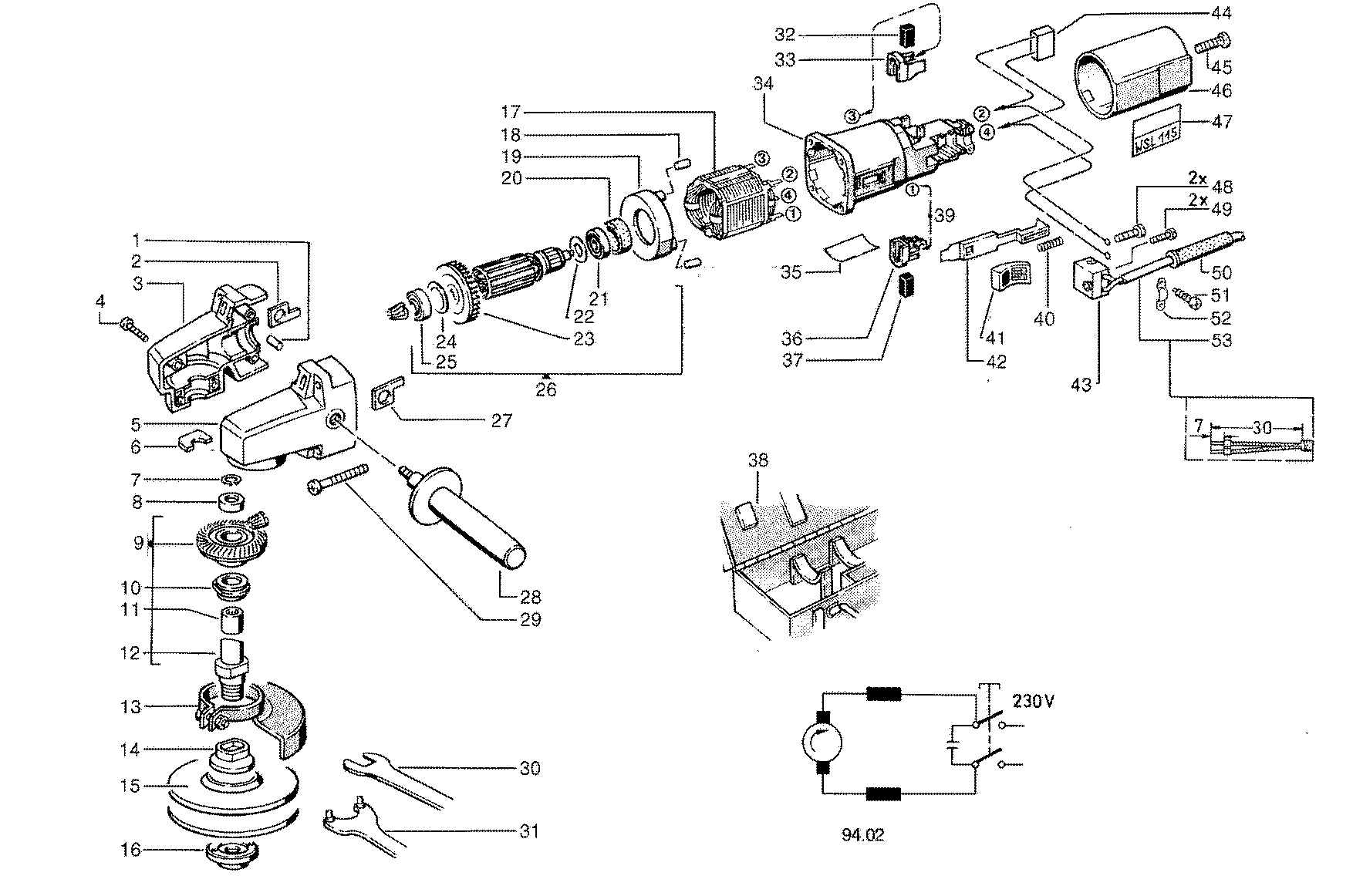 Zeichnung Sollten Sie Fragen zu einem Ersatzteil vom Milwaukee WSL115 Winkelschleifer (4000341765) haben, können Sie uns gerne eine E-Mail (mit einem Foto vom Typenschild Ihres Gerätes) schreiben oder eine Ersatzteilanfrage stellen.