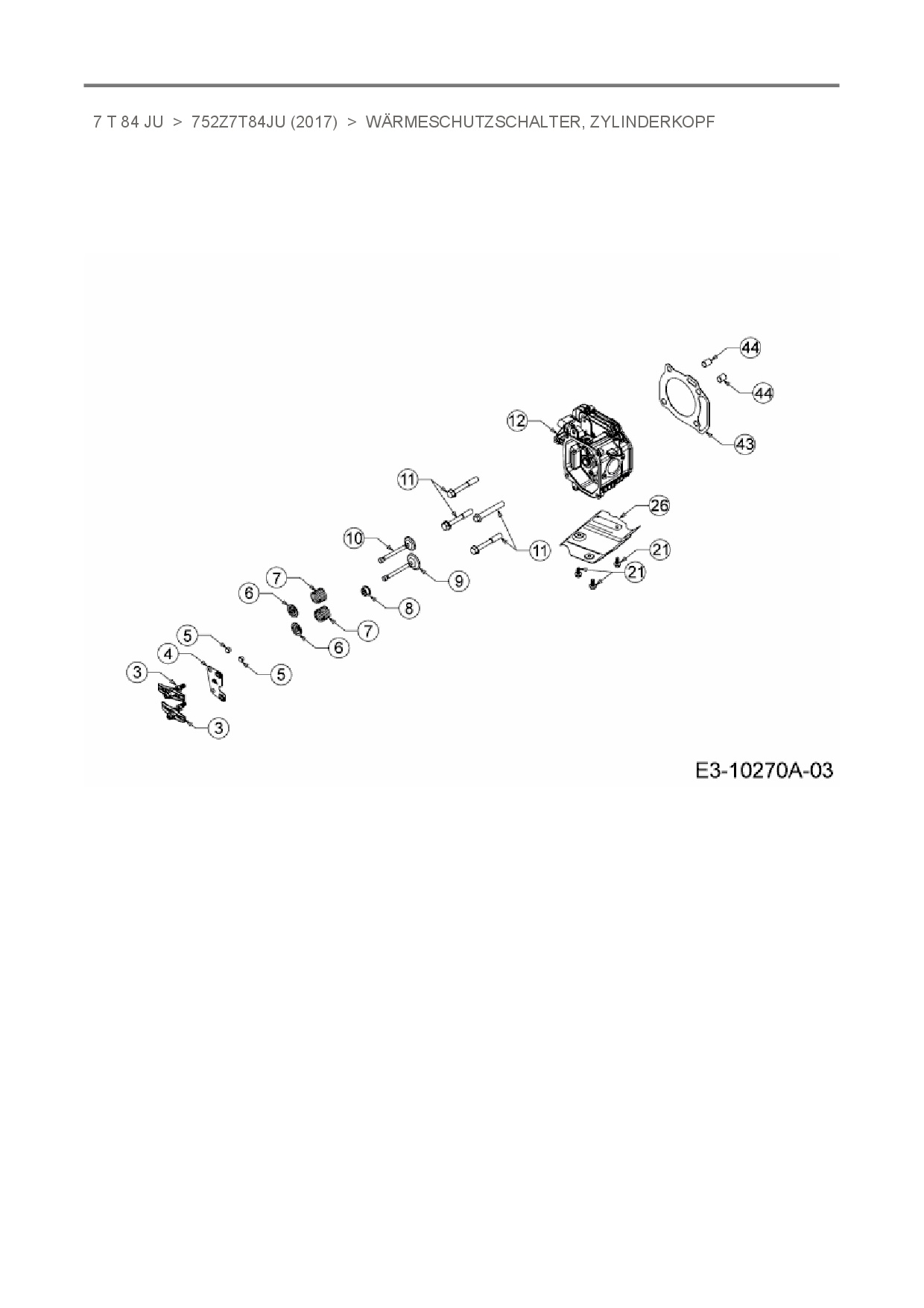 Ersatzteile für Vertikal MTD-Motoren 7 T 84 JU aus der Zeichnung Wärmeschutzschalter, Zylinderkopf: