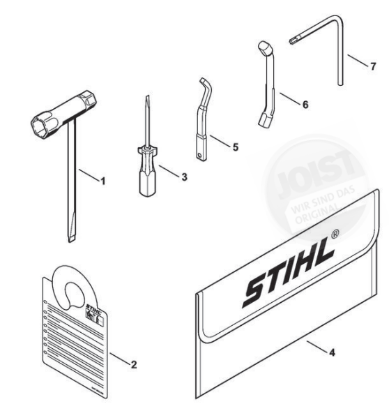 Hier finden Sie alle Ersatzteile von Stihl Benzin-Motorsägen MS 192 T der Zeichnungsgruppe Werkzeug, Sonderzubehör: