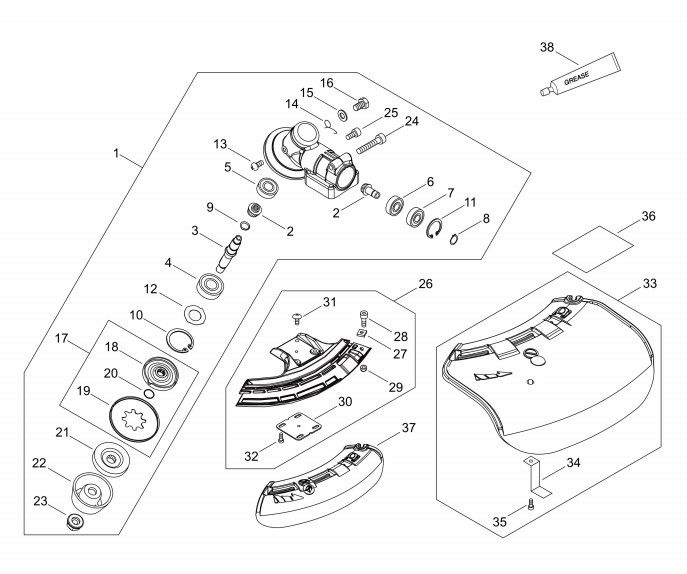 Zeichnung von shindaiwa Motorsensen C-Serie, Motorsensen mit U-Griff C303TS Winkelgetriebe, Schutz: