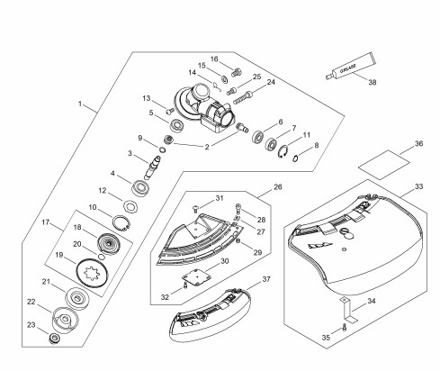 Zeichnung von ECHO Motorsensen Kreiselscheren EKS-PRS3020-230U Winkelgetriebe, Schutz: