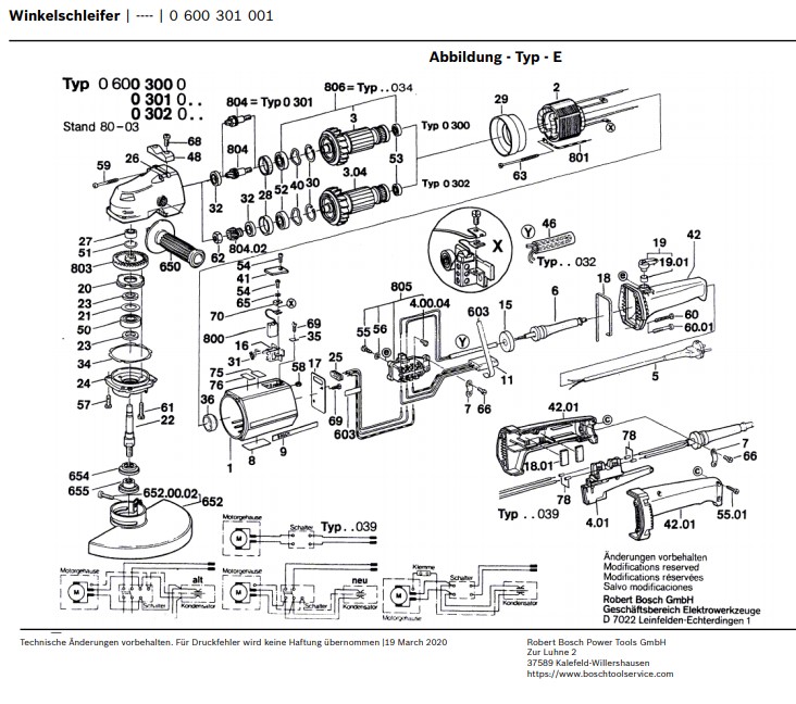 Zeichnung Bosch Winkelschleifer 0 600 301 001: