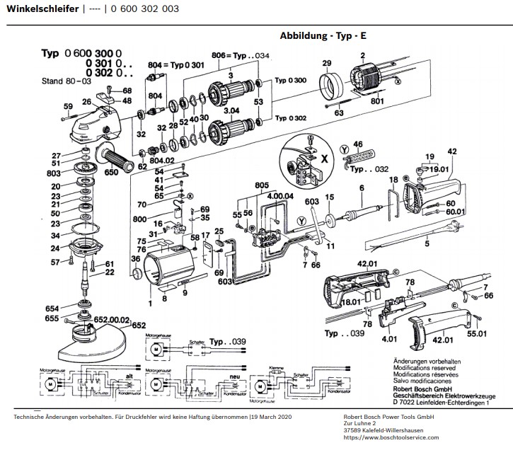 Zeichnung Bosch Winkelschleifer 0 600 302 003: