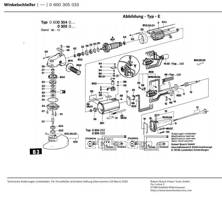 Zeichnung Bosch Winkelschleifer 0 600 305 033:
