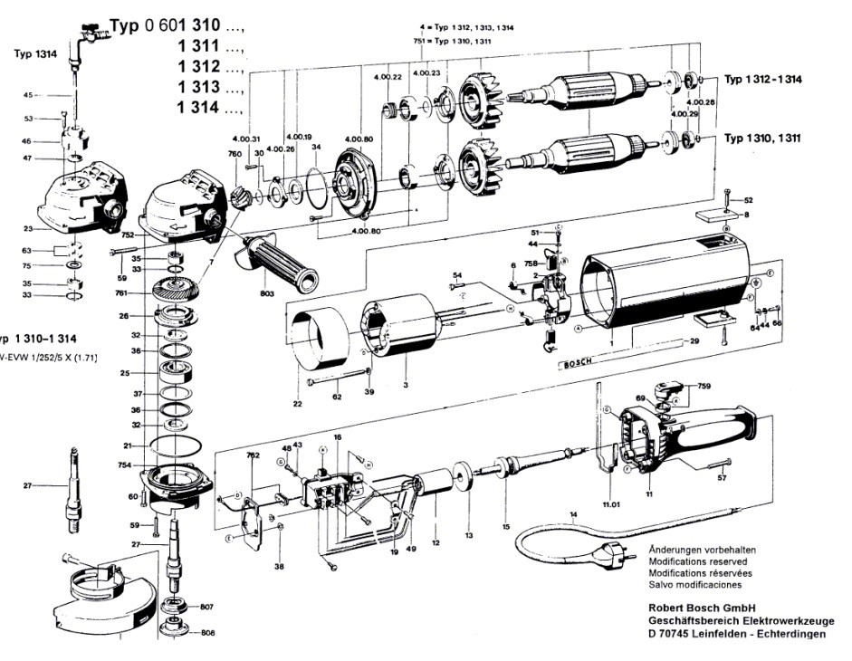 Zeichnung Bosch Winkelschleifer 0 601 312 007: