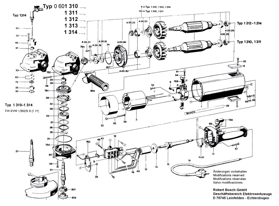 Zeichnung Bosch Winkelschleifer 0 601 314 001: