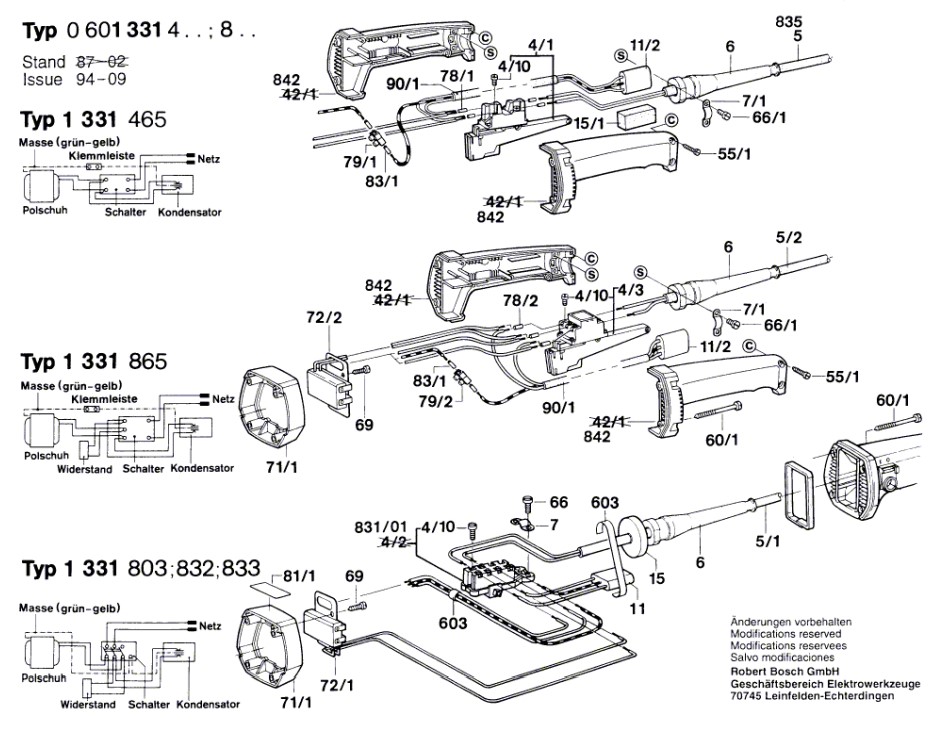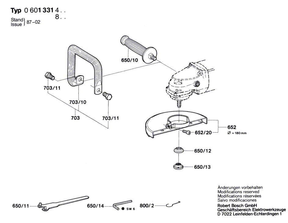 Zeichnung Bosch Winkelschleifer 0 601 331 833: