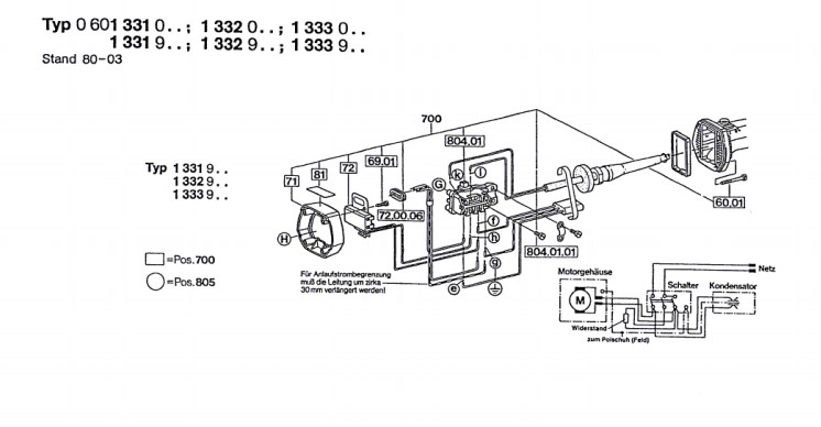 Zeichnung Bosch Winkelschleifer 0 601 332 050: