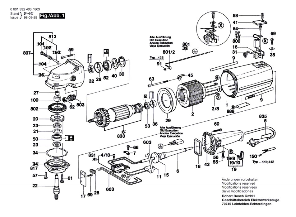 Zeichnung Bosch Winkelschleifer 0 601 332 450:
